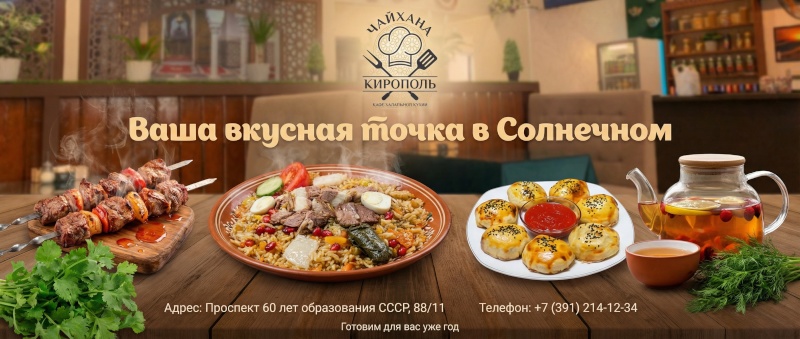 Чайхана «Кирополь» — уютное кафе в Красноярске, где готовят вкусные и сытные блюда восточной и европейской кухни. Мы находимся в самом сердце микрорайона Солнечный и уже больше года радуем гостей щедрыми порциями, гостеприимной атмосферой и быстрым обслуживанием. А теперь привозим ваш любимый вкус прямо домой – работаем с доставкой по району Солнечный!