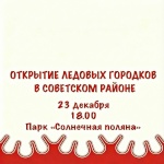 23 декабря 2024 года начнёт работу главный ледовый городок микрорайона Солнечный. Торжественное открытие с праздничной программой и зажжением ёлки пройдёт в парке «Солнечная поляна».
